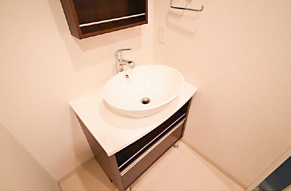 お手洗いエリアもホワイト清潔感ある空間。