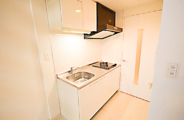ホワイトカラーのシンプルなシステムキッチン。