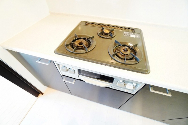 ガス3口コンロとグリルが備わっており、