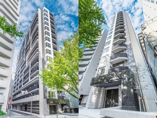 地上15階建てのスマートなフォルムが