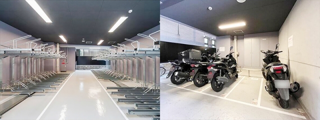敷地内には駐輪場やゴミ置き場も整備され