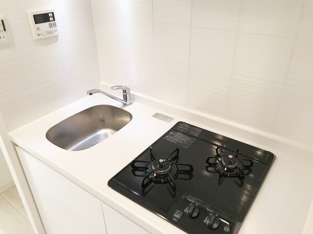 キッチンは全面ホワイトでシンクもコンパクト。