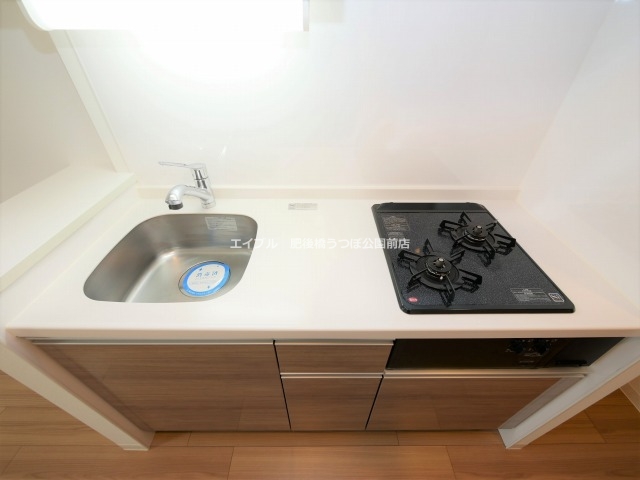 コンロが二口でキッチンにも収納がたくさんあるので食器や調理器具が多い方でも安心です。