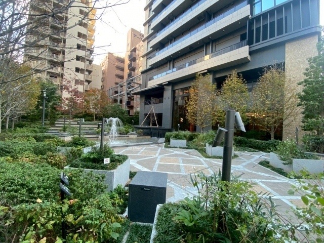 マンション入り口も緑に囲まれて噴水からあふれる水の音が心地よいです