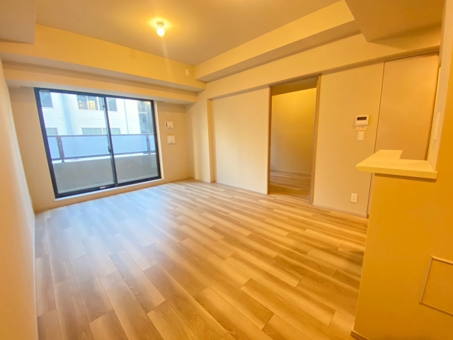 リビングとキッチンスペースは、それぞれキッチン部で約3.3帖、リビング部で10.5帖あり、床暖房も完備しています