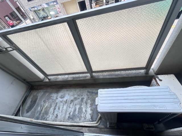 こちらのベランダに洗濯機置場があって、洗濯機もしっかりおいていただけます。