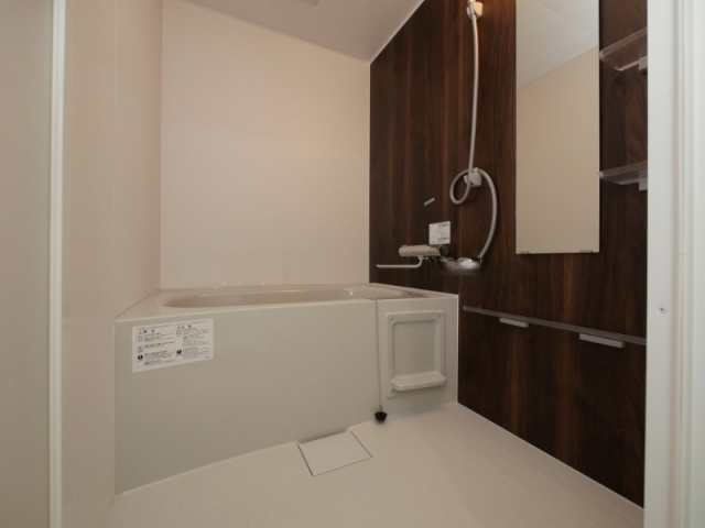 大きな鏡とシャワー浴槽蛇口も新築なのでとても綺麗です。