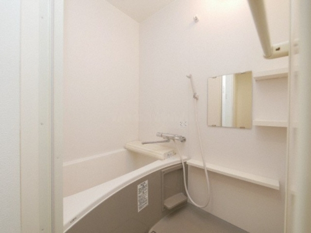 棚が沢山あり、鏡が備わっていて浴室もとても綺麗な造りになっています。