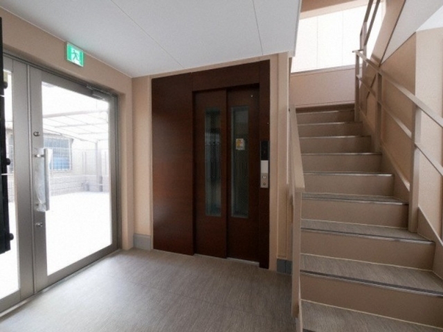 入口にはエレベータが付いていて、メールボックスも備わっています。