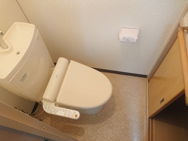 トイレには機能が備わっていて、収納もあります。