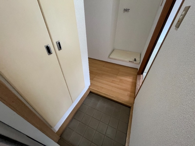 向かいに洗濯機置場があり、室内で洗濯も可能です。