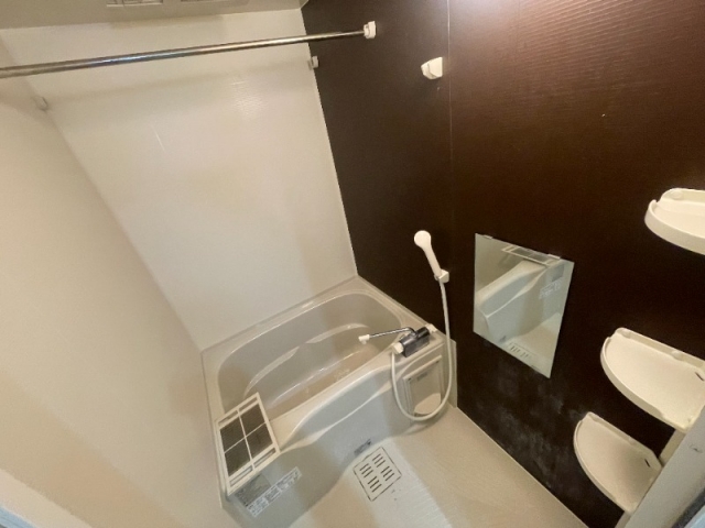 3段の棚が付いていて、シャワー鏡が付いています。