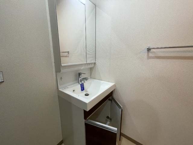 鏡が2面になっていて、洗面台はシャンプードレッサー付きの物となっています。