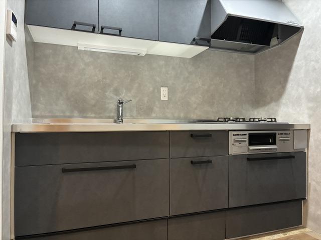 シックなお色味の大きい新品のシステムキッチン