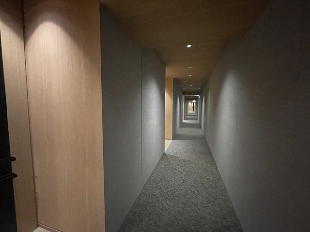 空調が適温に保たれ、絨毯が敷かれた共有部は
