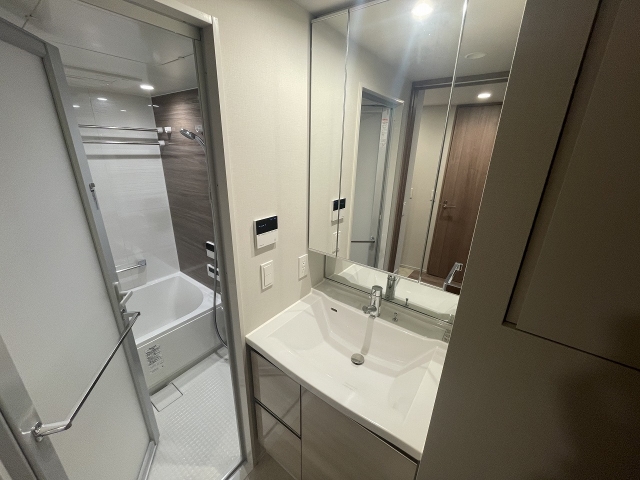 さっぱりとした印象のバスルームには