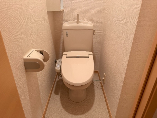機能付きトイレで、棚も備わって使いやすいトイレになっています。