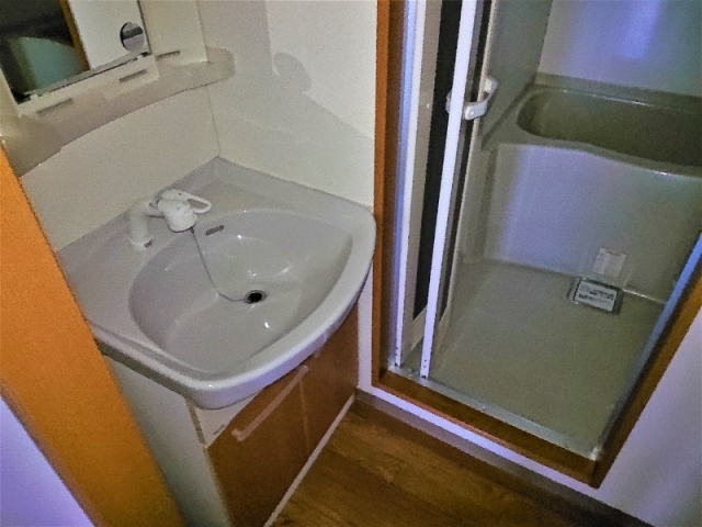 シャワー蛇口が付いて綺麗な浴室に代わっています。