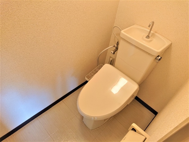 機能付きのトイレで、ペーパーホルダーなども備わっています。