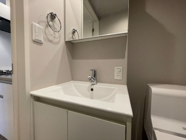 鏡横に棚があります。