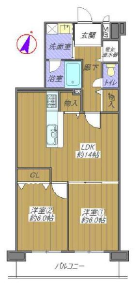 | 間取り | 2LDK 専有面積:62.55m2 18.92坪 |