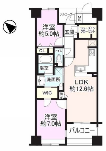 | 間取り | 2LDK 専有面積:57.52m2 17.39坪 |
