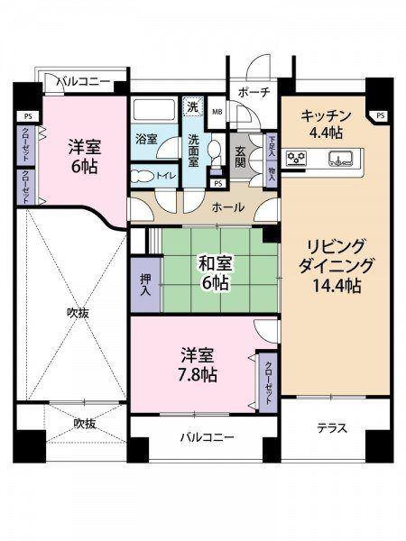 | 間取り | 3LDK 専有面積:84.8m2 25.6坪 |