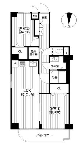 | 間取り | 2LDK 専有面積:58.15m2 17.59坪 |