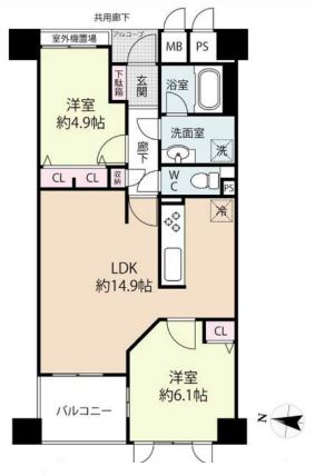 | 間取り | 2LDK 専有面積:57.83m2 17.49坪 |