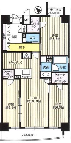 | 間取り | 3LDK 専有面積:86.32m2 26.11坪 |
