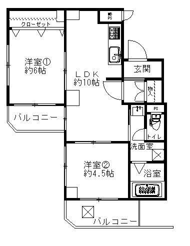 | 間取り | 2LDK 専有面積:49.41m2 14.94坪 |
