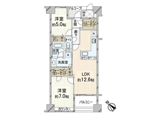| 間取り | 2LDK 専有面積:57.52m2 17.39坪 |
