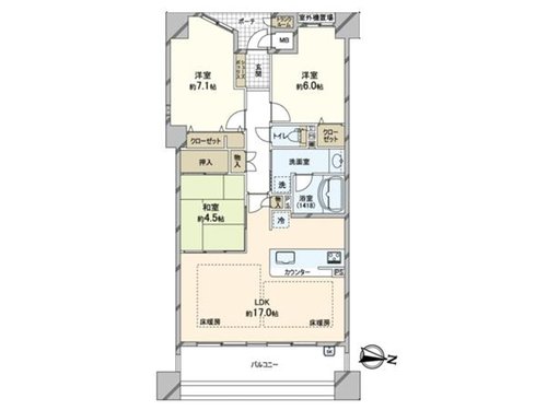 | 間取り | 3LDK 専有面積:76.11m2 23.02坪 |