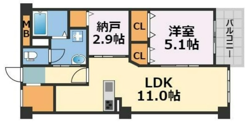 大阪市西区[肥後橋]の分譲賃貸マンション(1LDK)