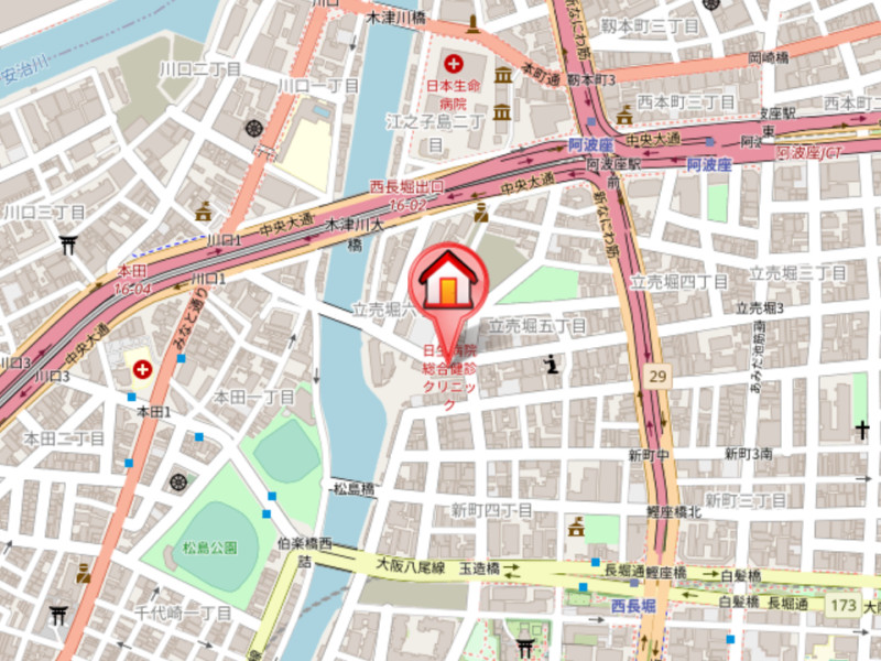 | 交通 | 大阪市営地下鉄中央線「阿波座」徒歩6分 大阪市営地下鉄長堀鶴見緑地線「西長堀」徒歩8分 大阪市営地下鉄長堀鶴見緑地線「ドーム前千代崎」徒歩16分 |