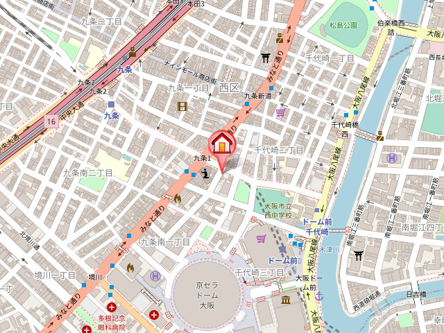 | 交通 | 阪神なんば線「ドーム前」徒歩6分 阪神なんば線「九条」徒歩4分 大阪市営地下鉄長堀鶴見緑地線「ドーム前千代崎」徒歩6分 |