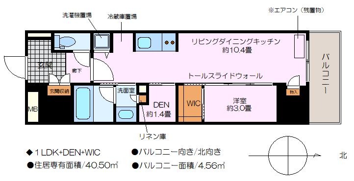 | 間取り / 広さ | 1LDK / 40.5㎡ | 所在階数 | 14階 | 向き | 北 |