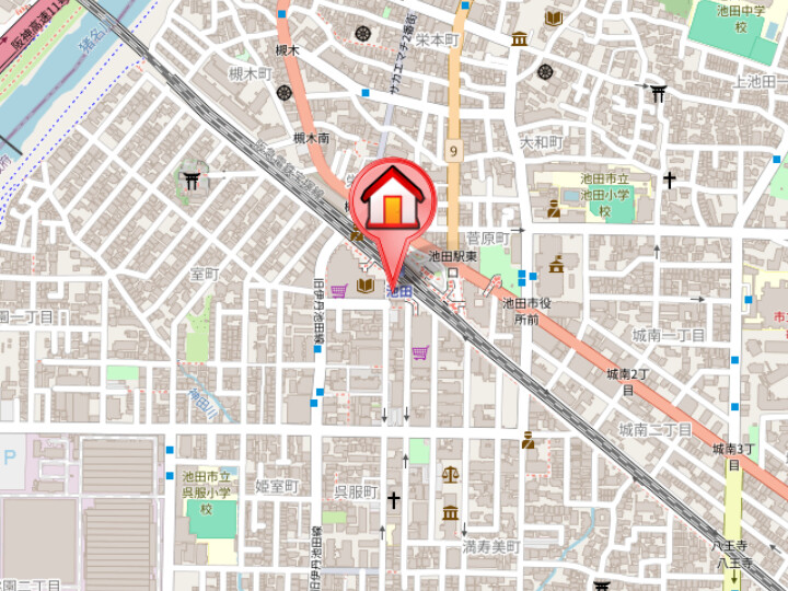 阪急宝塚本線「池田」徒歩2分 阪急宝塚本線「川西能勢口」徒歩23分 能勢電鉄妙見線「川西能勢口」徒歩23分 |