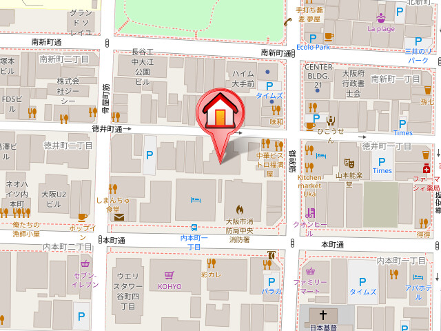 | 交通 | 大阪市営地下鉄谷町線「谷町四丁目」徒歩4分 大阪市営地下鉄中央線「谷町四丁目」徒歩6分 大阪市営地下鉄中央線「阿波座」徒歩9分 |