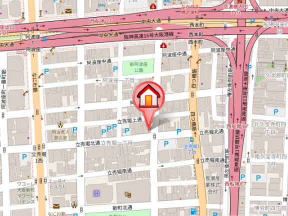 大阪市営地下鉄御堂筋線「本町」徒歩7分 大阪市営地下鉄四つ橋線「四ツ橋」徒歩7分 |