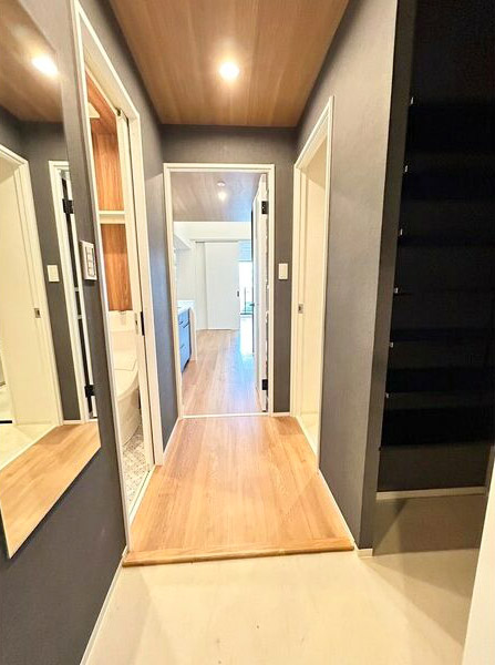 木目×ダークグレーな温かみを感じるお洒落内装です。