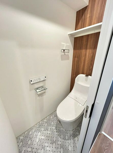 お手洗いは、温水洗浄便座タイプな設備。