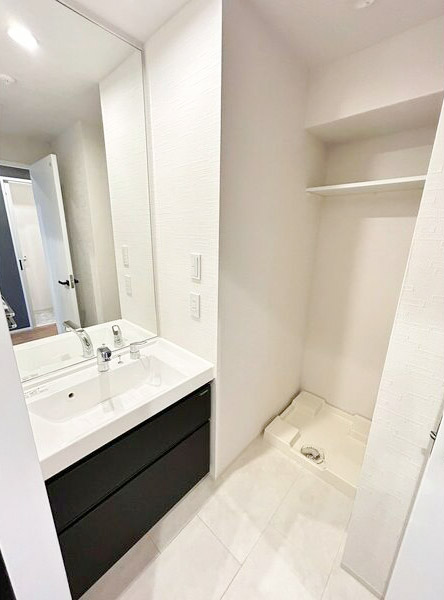 洗面脱衣所は、ホワイト基調な清潔感ある内装です。