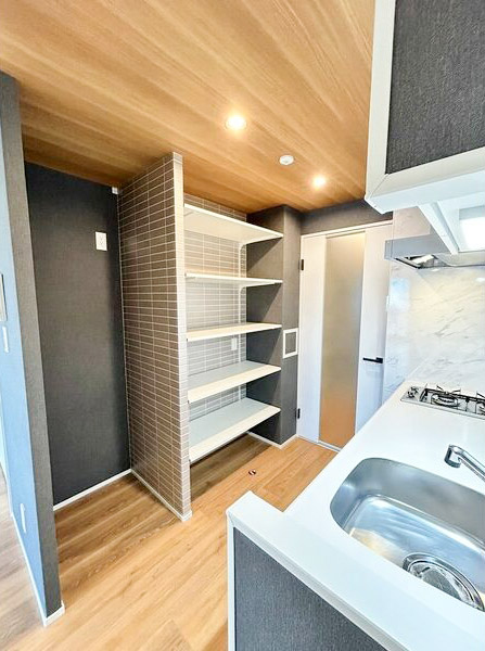 上部には棚があるので、ストック収納などにも困らなさそうです。