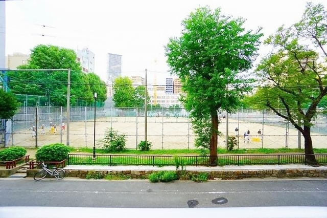 目の前には花乃井公園、少し足を延ばせば靭公園。