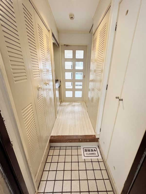 玄関〜廊下が意外と充実!両サイドにルーバー扉の収納が並んでいて