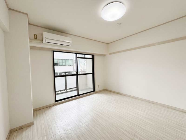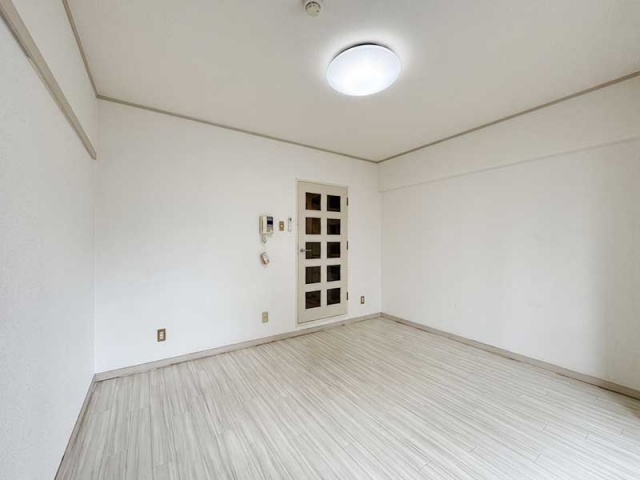 洋室はホワイト基調の明るい空間で、フローリングの