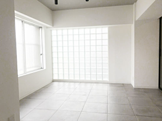 ガラスブロックの壁のおかげで採光もバッチリ入り、明るい。