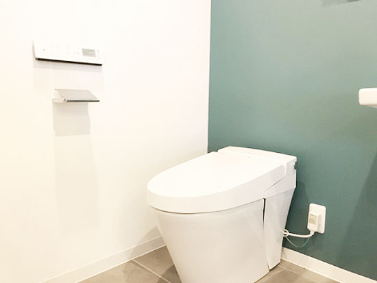 壁は、ブルーグリーンのアクセントカラーになっており
