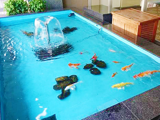 中には、なんとっ噴水もあり、鯉も泳いでおりますヨっ